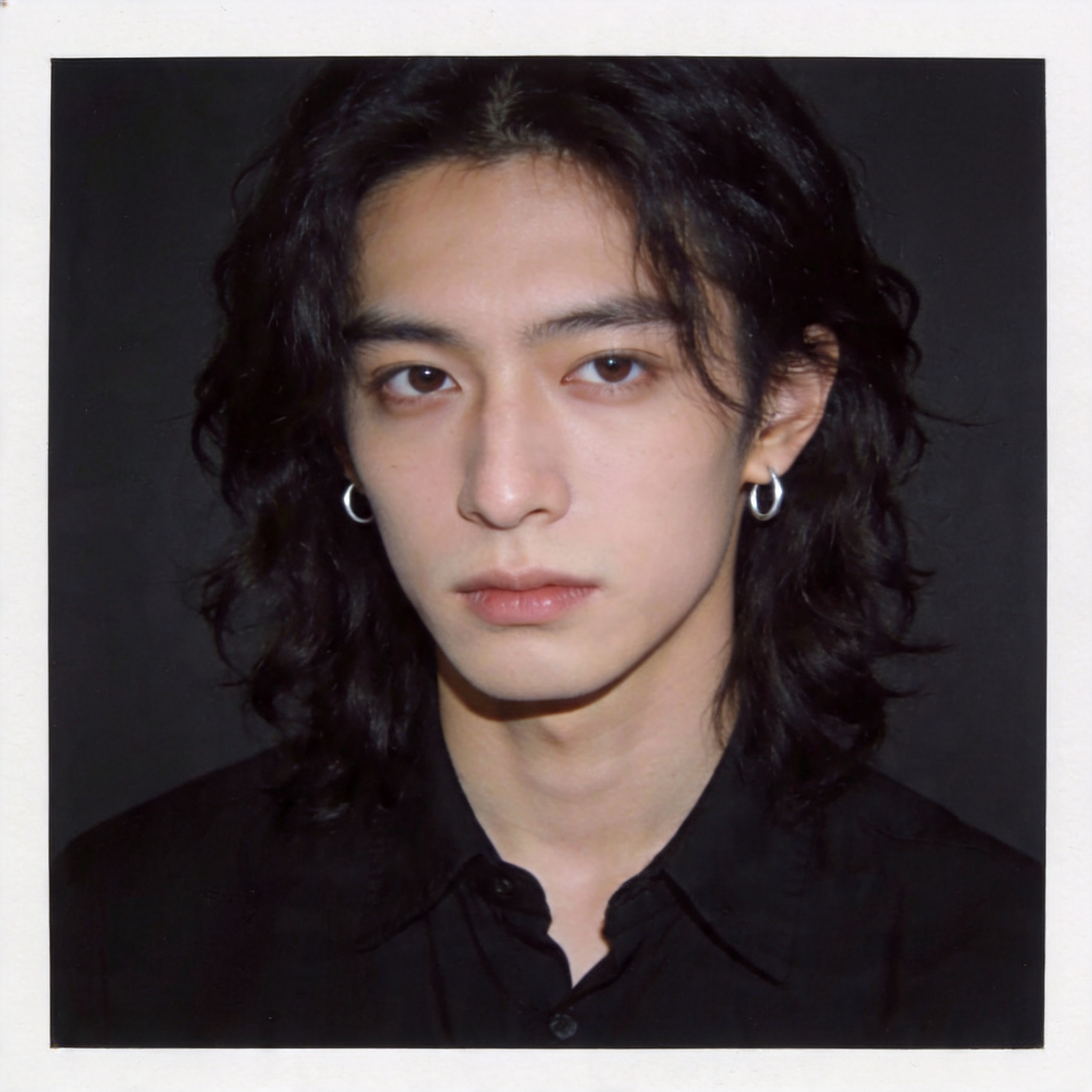 24岁,清瘦文艺(175cm),苍白肤色,长发微卷(及肩),喜欢穿黑色或灰色的文艺衬衫,戴简约银耳环